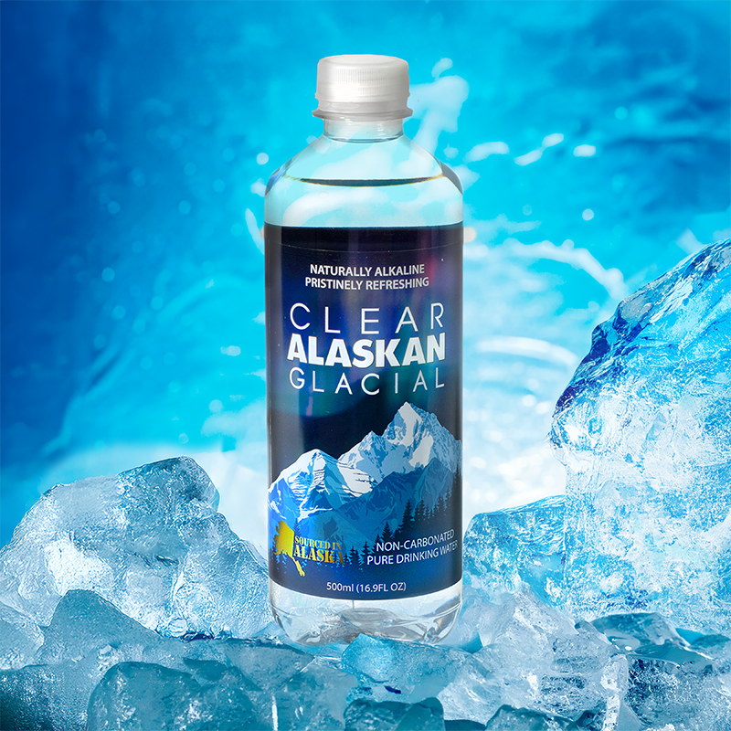 CLEAR ALASKAN GLACIAL is locally bottled in Chugiak, Alaska.